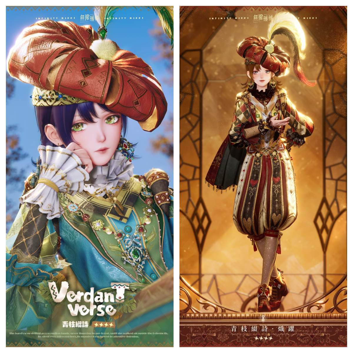 四星套裝「青枝綴詩」集齊後可解鎖能力「鈴鼓綻響·奇思妙想」,可自由演奏鈴鼓並變換節奏;進化後可獲得套裝「青枝綴詩·熾躍」,完成煥新後可解鎖「青枝綴詩·輪迴」外觀。