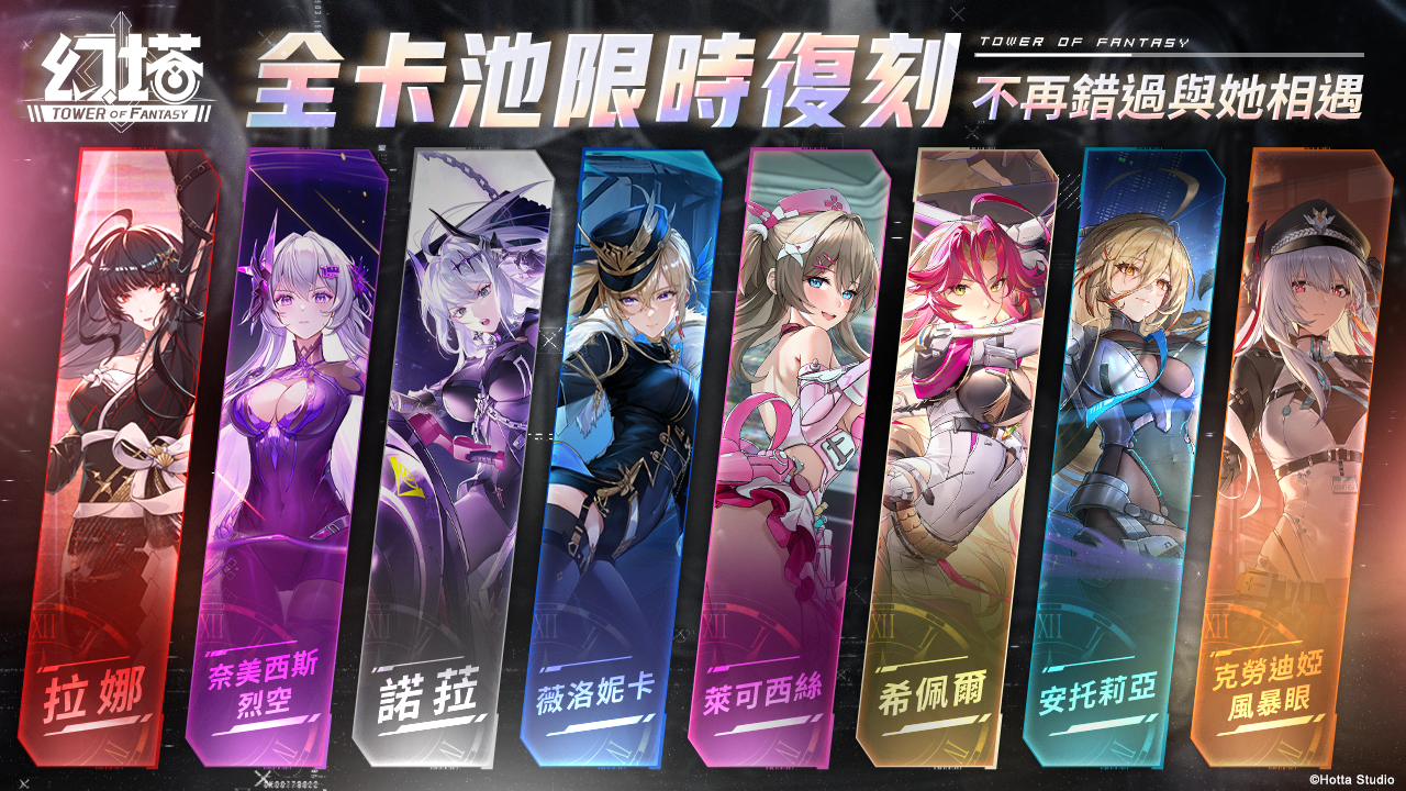 圖說:本次改版更開放限定卡池復刻,活動期間,正式服的授權者可把握機會,從萊可西絲、胡蘿貝、阿斯拉達、南斗、艾斯特、克勞迪婭·風暴眼、希佩爾、安托莉亞、梅麗爾·鎧、拉娜、奈美西斯·裂空、諾菈、薇洛妮卡等人氣擬態角色中自選心儀的角色,陪伴你繼續探索幻塔大世界。
